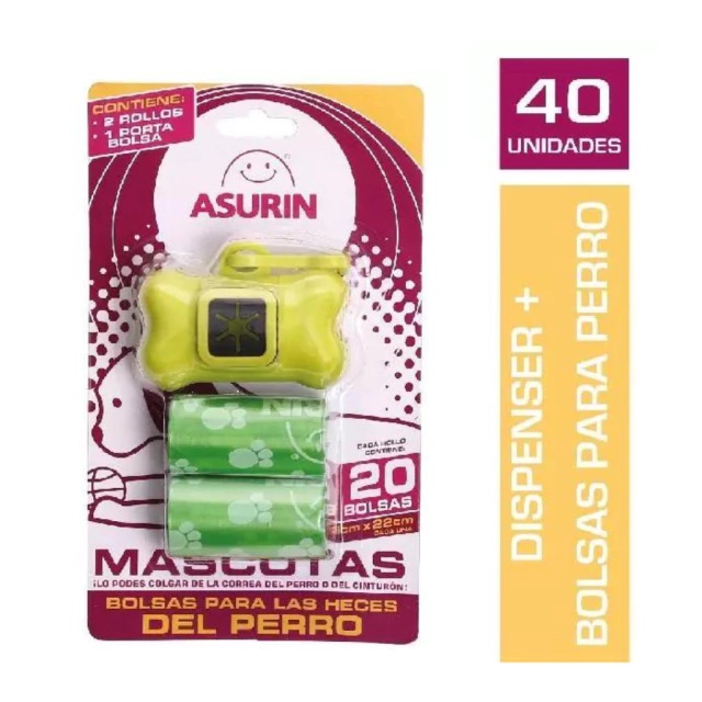 ASURIN MASCOTAS PERROS DISPENSER + 2 ROLLOS x 20u